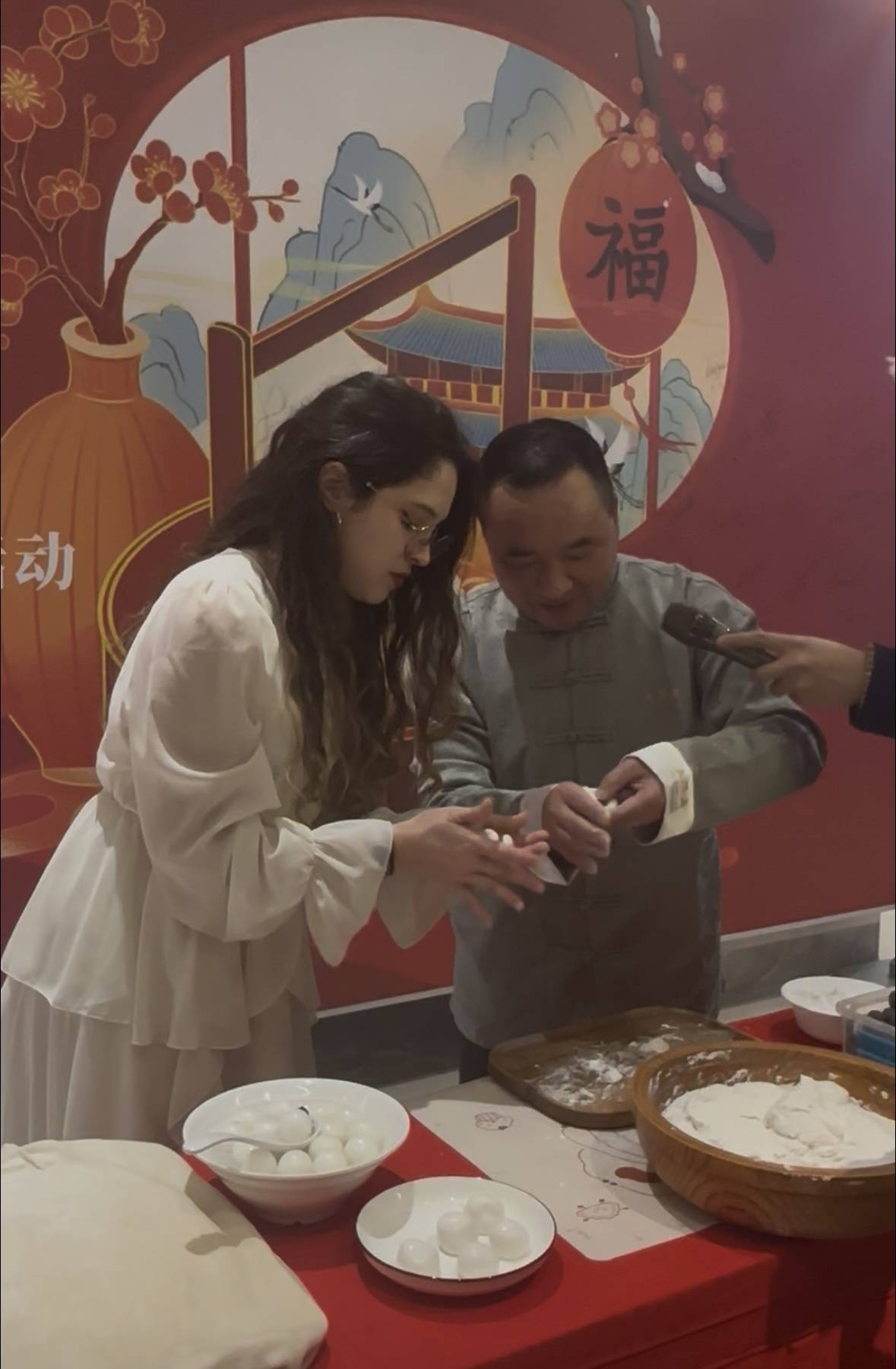 武汉市内免税店内,外国友人解锁做汤圆技巧