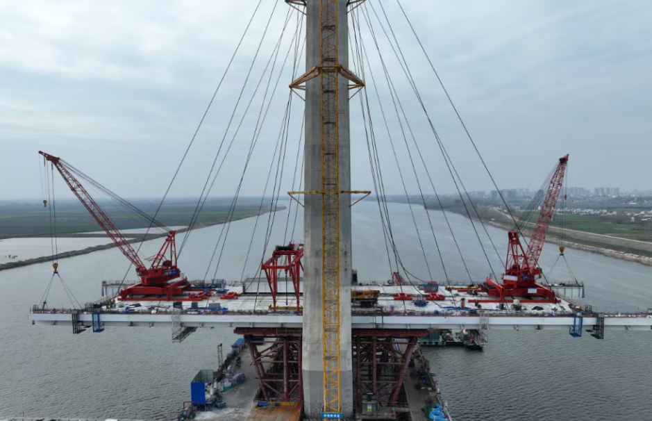 武荆宜高速汉江特大桥冲刺11月合龙