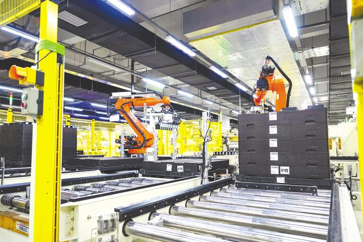 东昱欣晟动力电池5G工厂,每2.3秒下线一支电芯。 (湖北日报全媒记者 夏晓君 摄)