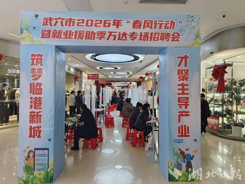 湖北日报讯(通讯员孙楠斌、鲁淑楠)春风送岗,热潮涌动。2月28日,武穴市2026年“春风行动”暨就业援助季系列招聘活动在万达广场火热开场。与往年“大而全”的集中招聘方式不同,今年武穴创新推出“小而精”的专场模式——紧扣临港产业、新材料产业、农文旅产业三大产业,开辟三大产业“VIP”专区,通过持续5天的专场招聘会,将岗位精准送至家门口、商圈里、乡镇上。