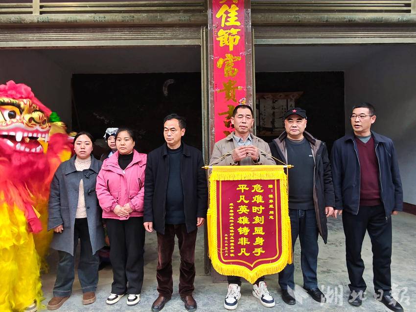 28日当天,锣鼓声在村里响起。采莲船舞进英雄家,乡邻们围了过来。大家用最朴素的方式,向身边的英雄表达敬意。谭弟咸表示,感谢乡亲们的关心,他会珍惜荣誉,继续踏实做人做事。