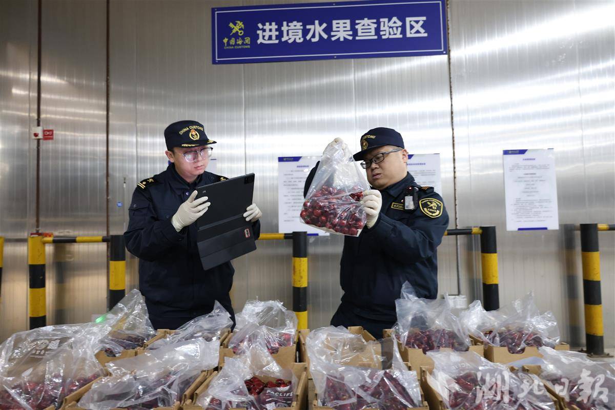 鄂州海关查验进口车厘子。湖北日报全媒记者周鹏摄