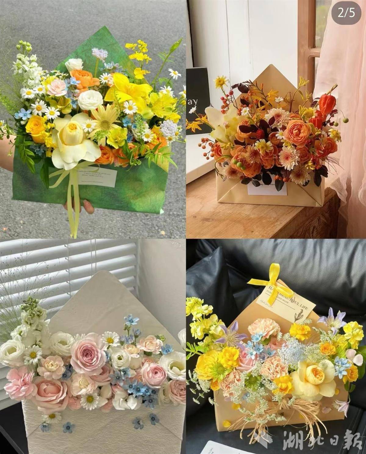 信封款“情书”鲜花,在网上也被广泛推荐,充满各位花艺师自己的巧思、审美。(整理制图:记者熊星星)