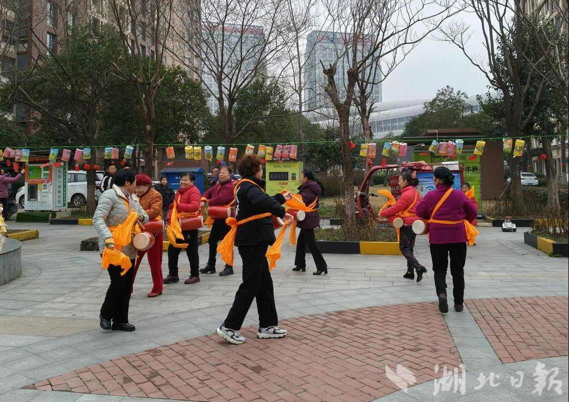中冶创业苑小区广场上,铿锵有力的腰鼓表演瞬间点燃现场氛围。由社区文艺骨干组成的腰鼓队鼓点整齐、气势昂扬,喜庆的节奏在各小区上空回荡。居民们纷纷驻足观看、鼓掌喝彩,有居民笑着说:“腰鼓一敲,年味儿就来了,看着就喜庆、热闹!这样的活动,既热闹又能聚人气,咱们邻里之间也更亲近了。”