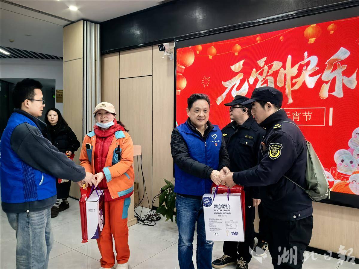 “元宵节还在忙,你们辛苦了!”志愿者们将热乎的汤圆和生活物资送到环卫工人和一线城管队员手中,感谢他们为城市环境和居民平安作出的贡献,用实际行动践行雷锋精神和为民服务的初心。