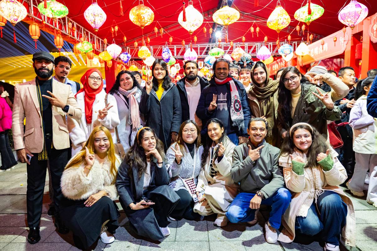 2026年3月3日,元宵佳节夜,湖北省博物馆“钟鸣楚天元宵夜” 主题灯会精彩上演,图为大批在汉高校的外国留学生们在灯会现场拍照留念。(湖北日报全媒记者 何宇欣 通讯员 黄敏 摄)