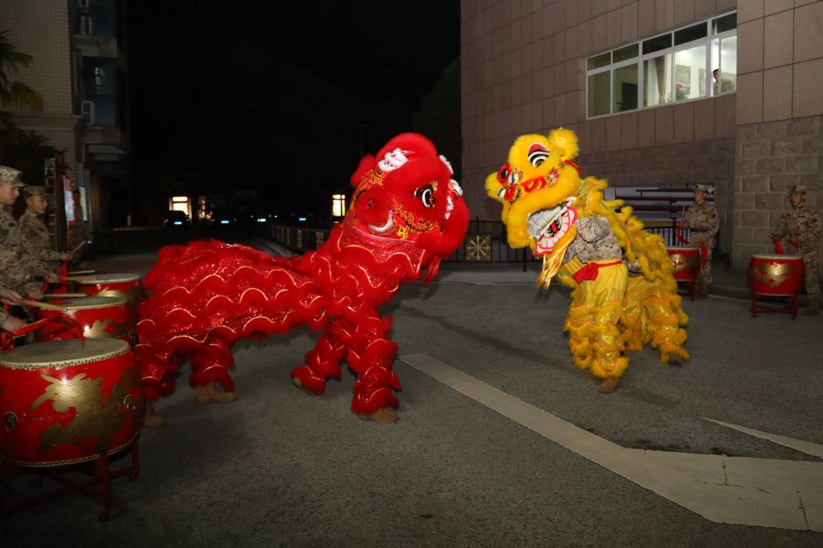 活动在精彩的舞狮表演中拉开帷幕。腾跃、扑闪、翻滚……舞狮队员的一招一式既刚劲有力又灵动活泼,将传统民俗的独特魅力展现得淋漓尽致。铿锵的锣鼓声与现场的喝彩声交织在一起,瞬间点燃了营区的节日氛围。