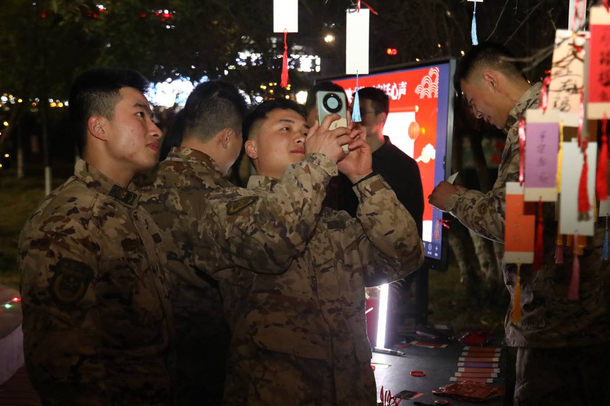 “情报破译站”里,大家凝神思索、争相猜谜,在传统文化互动中比拼智慧;“弹无虚发”点位上,水弹枪射击尽显身手,大家沉浸式体验军营竞技的独特乐趣;“冲锋传令兵”“精准打击”“粮草先行”等趣味游戏各有特色,考验着大家的方向感、专注力与协作力,每个人都各展所长、踊跃参与。参与者每完成一项任务,便能收获相应的军功券和专属图章。一张张券、一枚枚章,不仅让大家在比拼中收获了满满的成就感,更让军营元宵的欢乐氛围愈发浓厚。