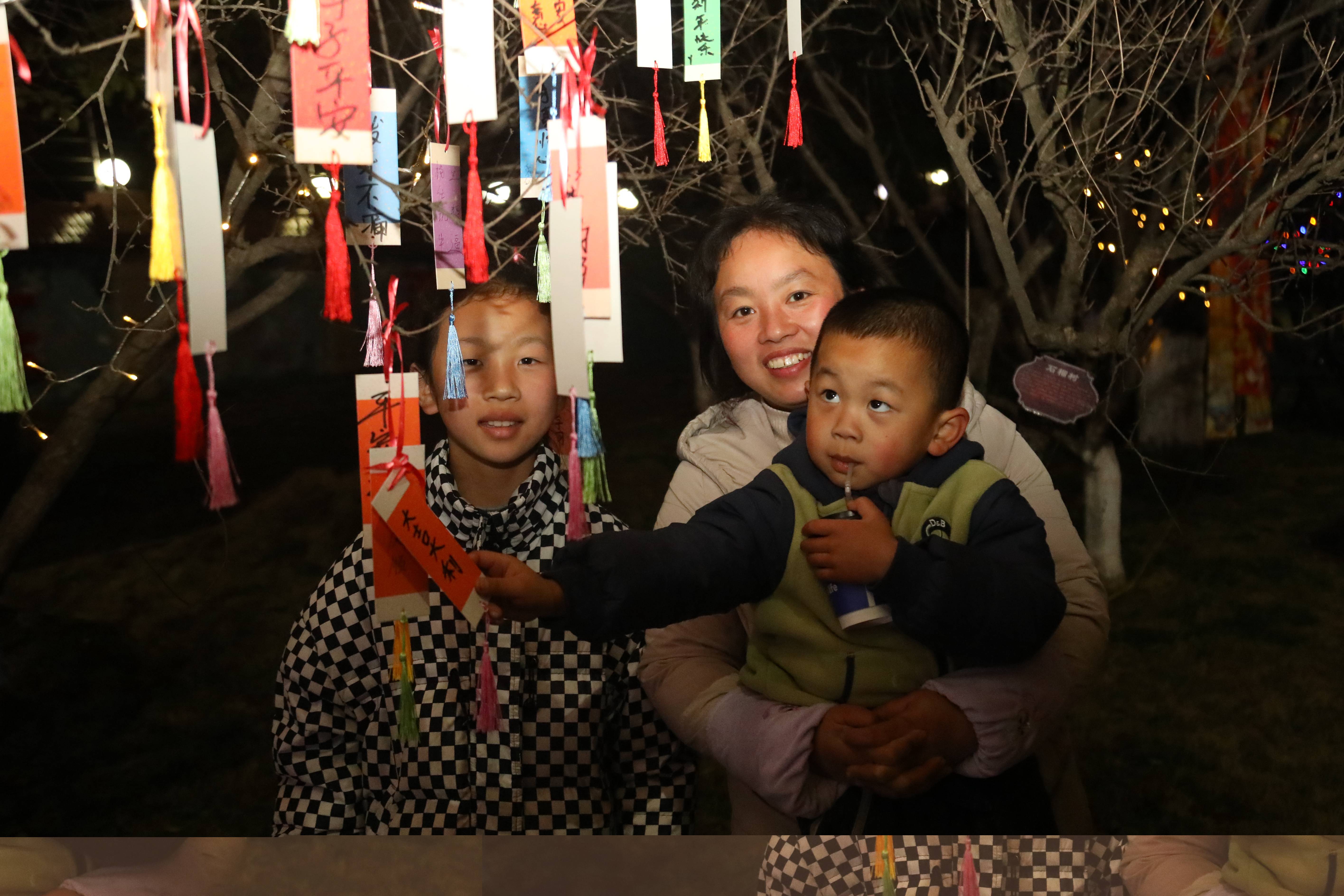 园区中央的祈愿树旁,人头攒动、暖意融融。官兵及家属们纷纷领取福牌,一笔一画认真写下心中的期许:有对家人平安健康的祝福,有对军营建设蒸蒸日上的祝愿,也有对自身军旅生涯砥砺前行的心声。写满心愿的福牌挂满枝头,成为军营里一道温暖的风景线。