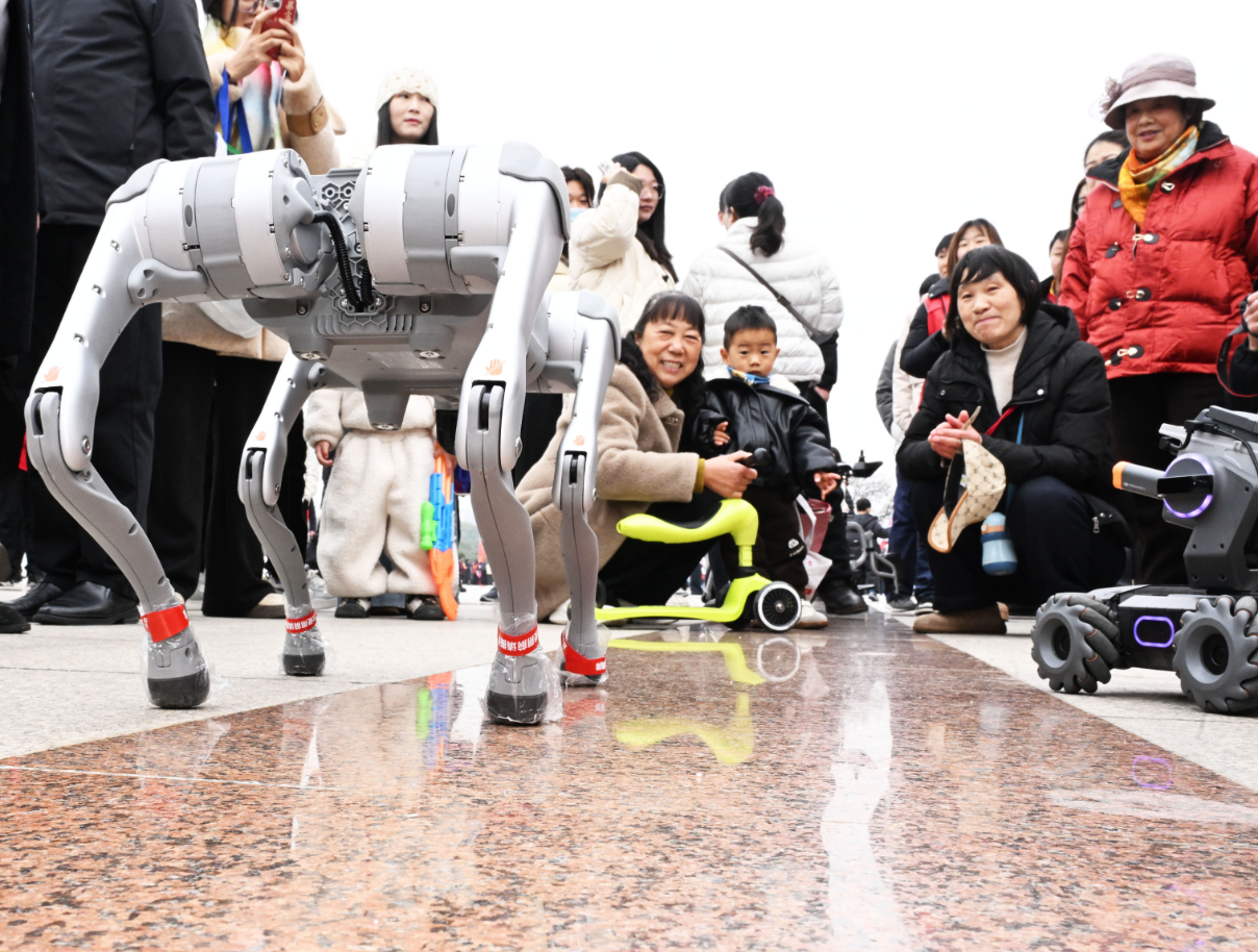 2026年孝感市“学雷锋 做志愿 迎省运会 创文明城”主题志愿服务活动现场,志愿者熟练操控机器人完成一系列动作,引导孩子们近距离观察,讲解机器人运行原理。(来源:孝感日报)
