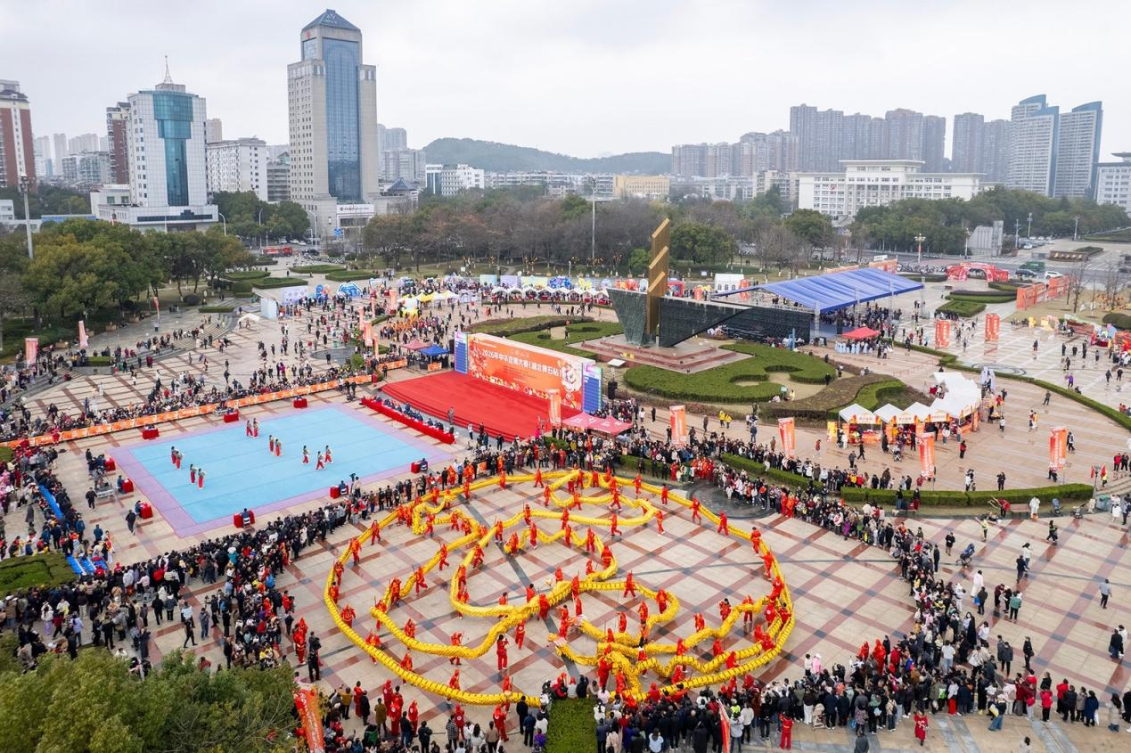 本次赛事不仅是一场龙狮技艺的激烈比拼,也是2026年“与春同行”湖北休闲运动消费季主会场(黄石)“春竞”板块的精彩组成部分。赛场外配套设置了龙狮文创展区、非遗体验区、龙狮教学体验区、黄石味道专区、体彩互动区等,不仅丰富了市民的新春文化体育生活,也有力推动了舞龙舞狮运动的传承与发展。