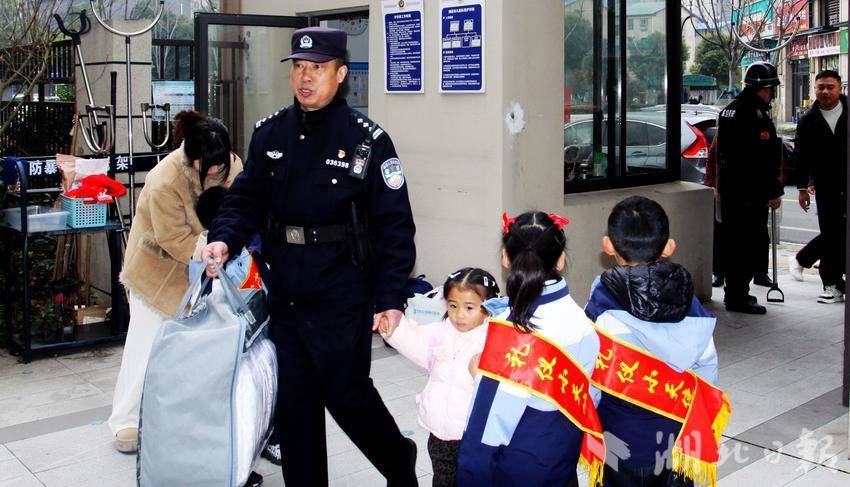 湖北日报讯(通讯员 张萍)3月4日,武汉中小学、幼儿园等校园开学第一天,武汉市公安局东西湖区分局长青街派出所华星(团结)社区警务室组织民警、江城义警队员,深入片区德馨幼儿园等校园,为近千名孩子们普及法律法规及各类安全知识,全方位精心护航校园开学季安全。
