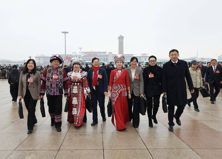 今天十四届全国人大四次会议开幕会前,湖北代表团代表意气风发步入会场。(湖北日报全媒记者 张朋 蔡俊 摄)