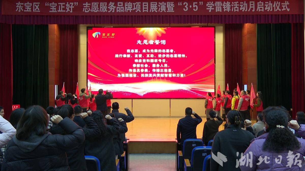 湖北日报讯(通讯员曾琴)3月4日上午,荆门市东宝区举办“宝正好”志愿服务品牌项目展演活动,并同步启动“3·5”学雷锋志愿服务月系列活动。在项目展演现场,浏河社区“好未来—家风讲者”、金虾河社区“好帮手—老街坊志愿服务”、金龙泉社区“好帮手—金邻解忧”、土门巷社区“好港湾—小巷生金”等一系列扎根基层、贴近群众的志愿服务项目精彩亮相,以演讲、情景剧等生动形式,展现了东宝区志愿服务扎根社区、服务民生的鲜活实践,也拉开了东宝区“3·5”学雷锋活动月的序幕。