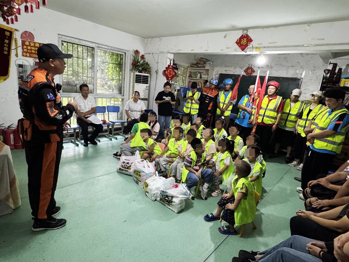 “江城骑侠”志愿服务队给留守儿童送文具和慰问金。