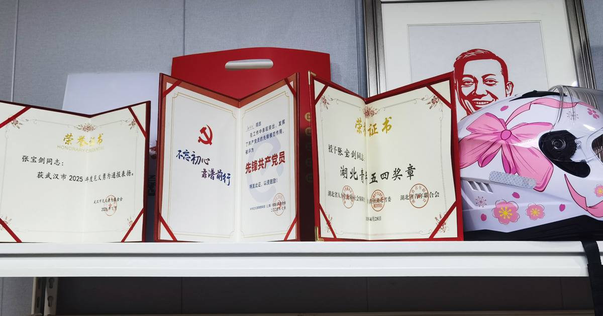 近年来,各种荣誉接踵而至:湖北五一劳动奖章、湖北青年五四奖章、饿了么“蓝骑士社区侠”、武汉市急救中心“城市骑士・‘救’在身边”行动形象大使……面对光环,他始终淡然。