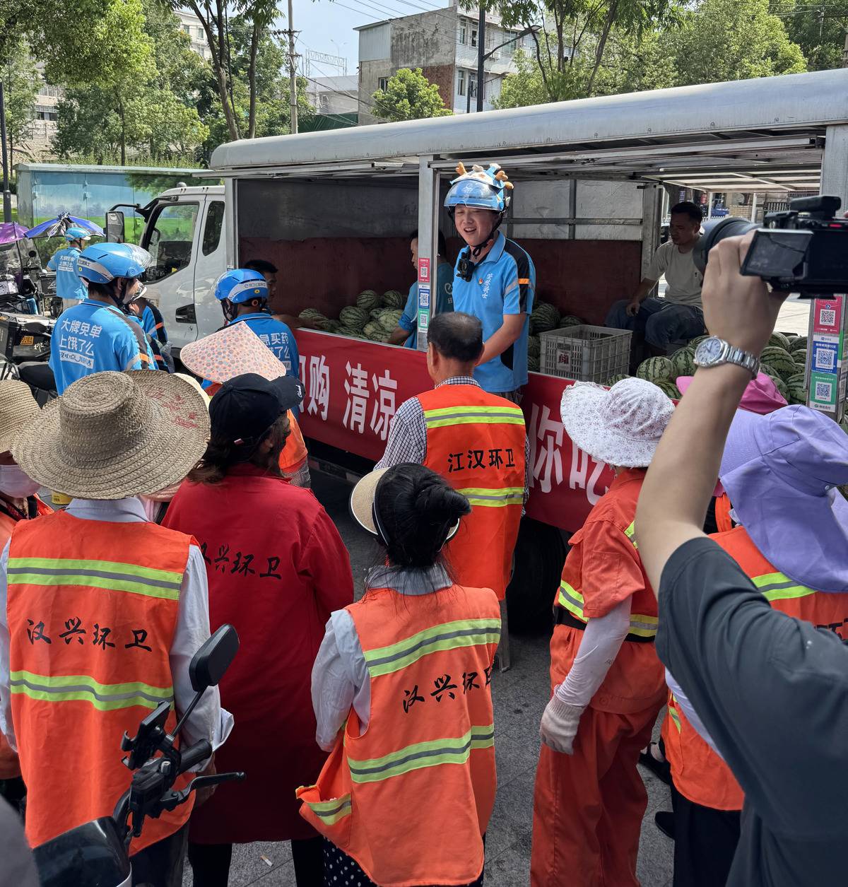 张宝剑购买西瓜送给环卫和同行。