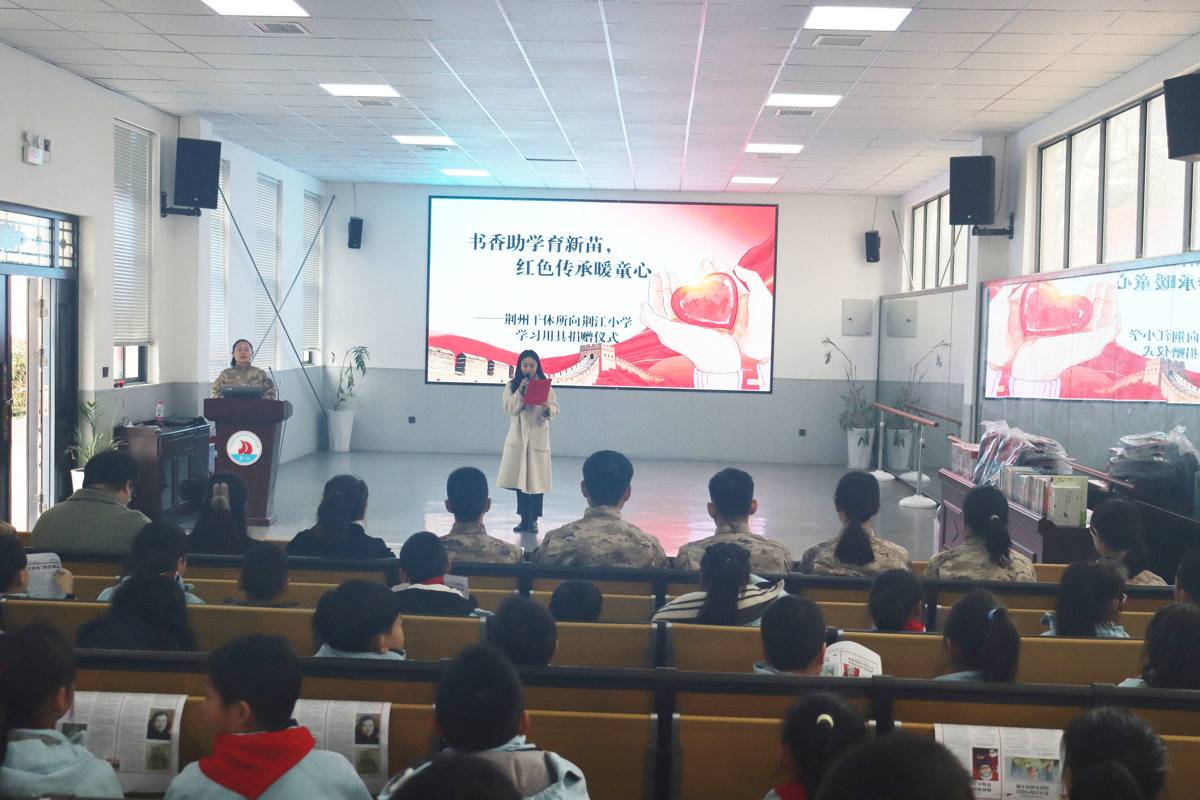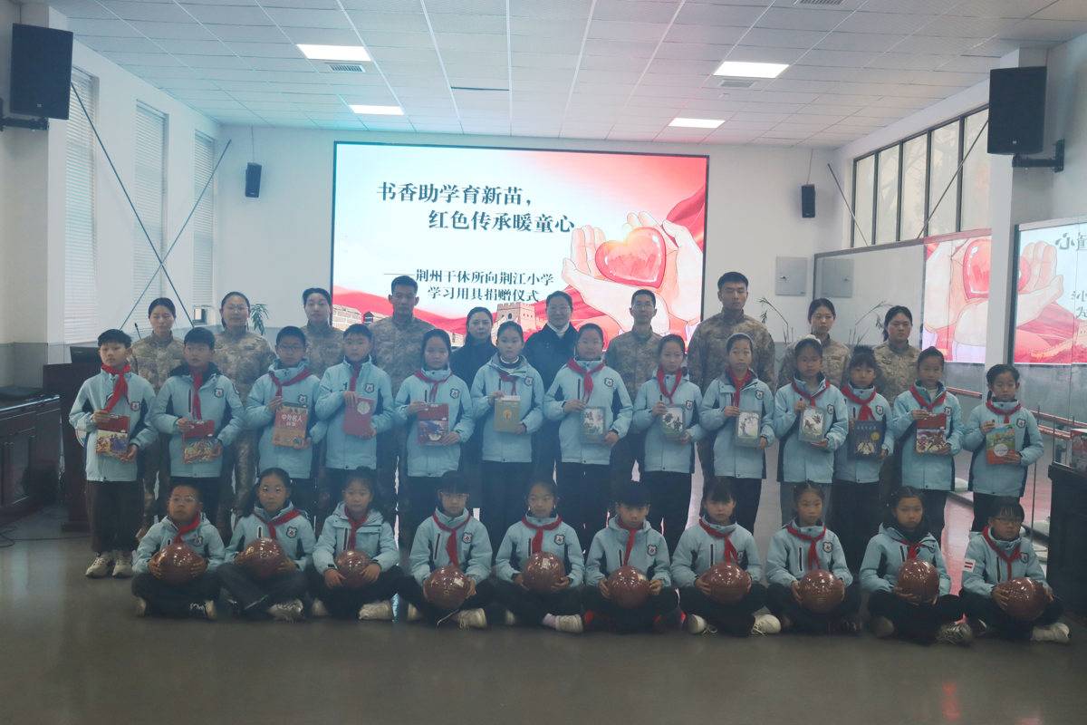 在第63个学雷锋纪念日到来之际,湖北省军区荆州离职干部休养所现役官兵和文职人员来到荆江小学,讲传统、学雷锋、话长征、赠书籍,开展交流互动、分享问答,通过知识进学校、国防进学校、爱心进学校实践活动,在孩子们心里种下爱党爱国爱军的种子。