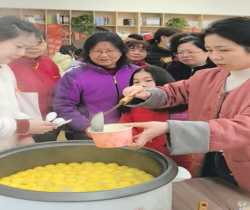 工作人员煮的汤圆香气四溢,居民们围坐在一起,品尝着甜糯的汤圆,分享着节日的喜悦与便民服务的暖心体验。