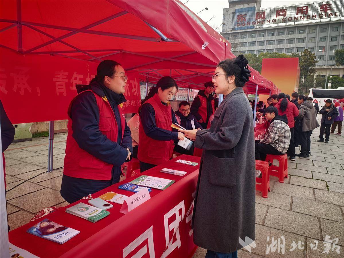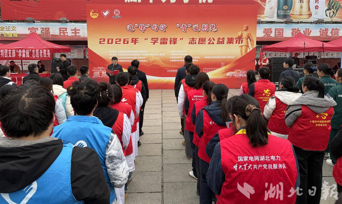 湖北日报讯(通讯员金勤)3月5日,在湖北十堰张湾区青年广场,由十堰市团市委、东风公司团委联合主办的“追‘锋’而行 ‘青’暖荆楚”2026年“学雷锋”志愿公益集市火热开市。65支青年志愿服务队身披“志愿红”集结于此,用实际行动传承雷锋精神。