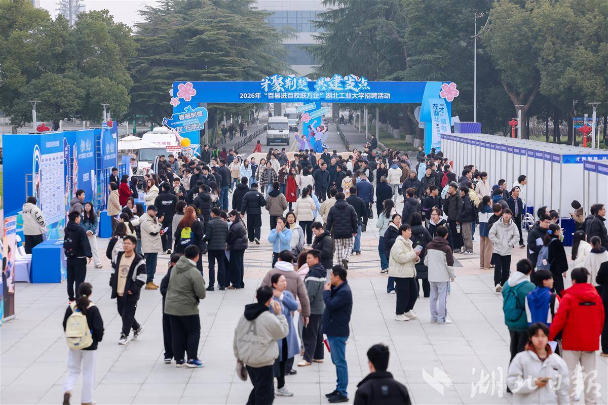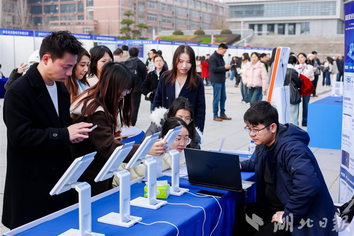 3月5日,由省人社厅主办的首场荆楚就业大讲堂活动在湖北工业大学举行,同期举行的招聘活动吸引了41家企业参与,提供岗位2000余个。一系列智能化就业服务新场景亮相,吸引了大量学子驻足体验。