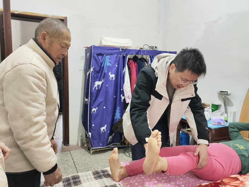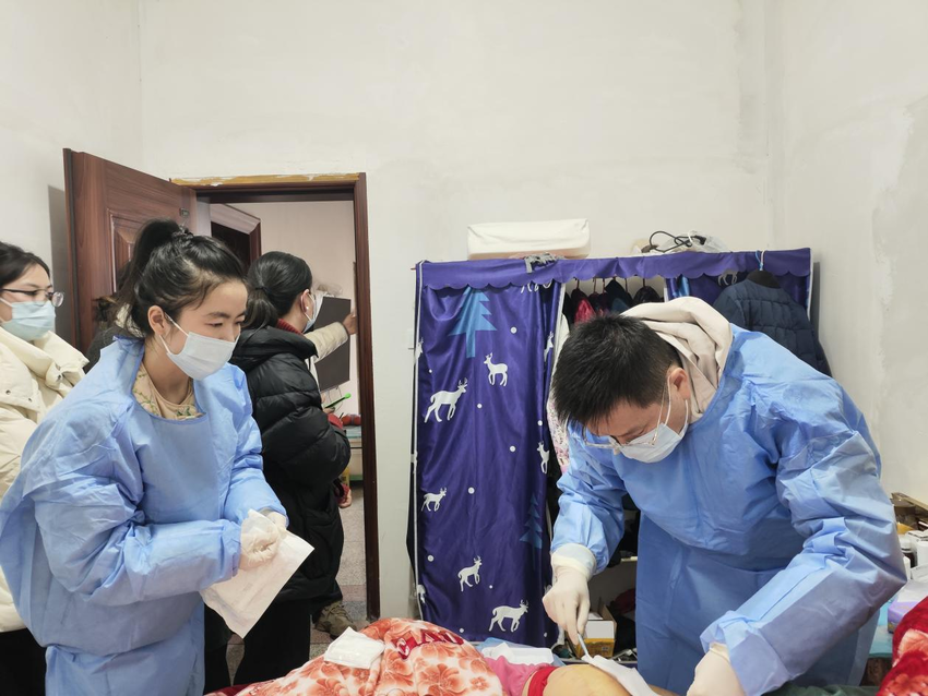 “老人不方便过来,那就我们过去。”接到电话后,谢峰没有犹豫,当即决定上门服务。28日上午,医护团队备齐医疗设备,沿着蜿蜒的乡间小路驱车一个半小时,抵达祝婆婆家中,随即投入到细致有序的护理工作中。