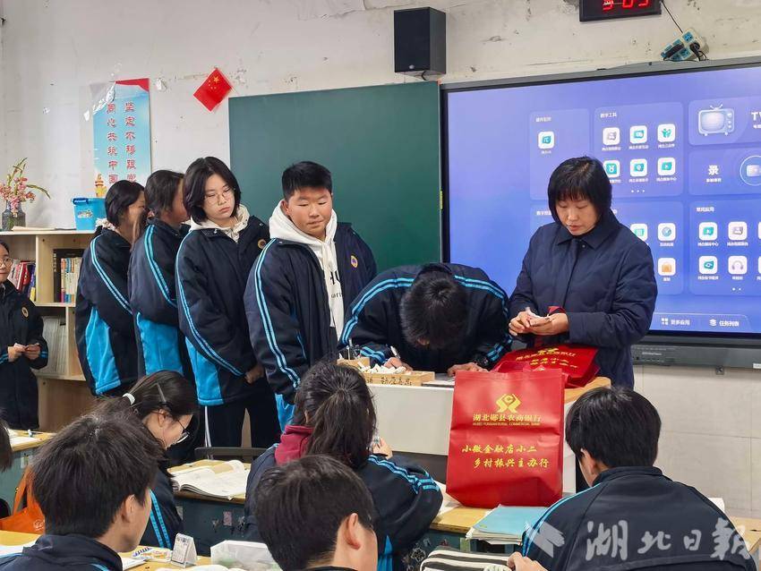 2月26日,是十堰市郧阳区一中春季学期学费收缴的日子,而今年与往年不同的是,全校69个班的3000多名学生不用再排队等候,学校财务室也不用再加班到深夜,郧县农商银行营业部的员工们一大早就来到校园内摆放好点钞机、POS机、登记表,提供“一站式”代收服务。
