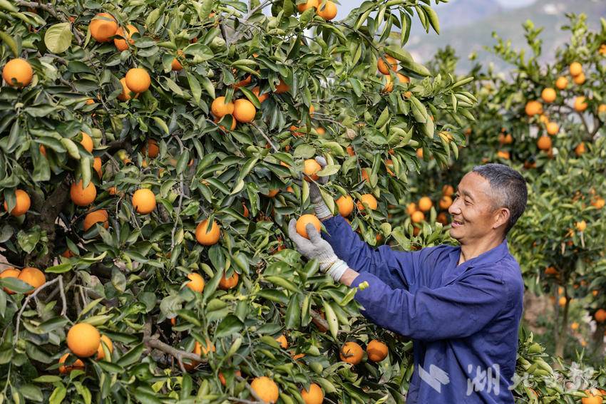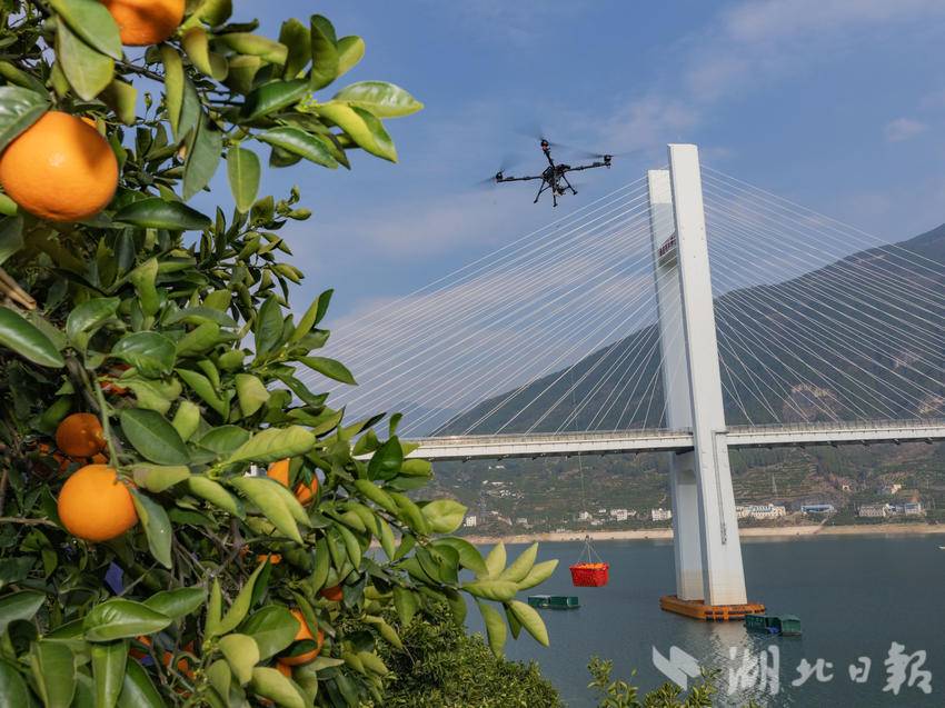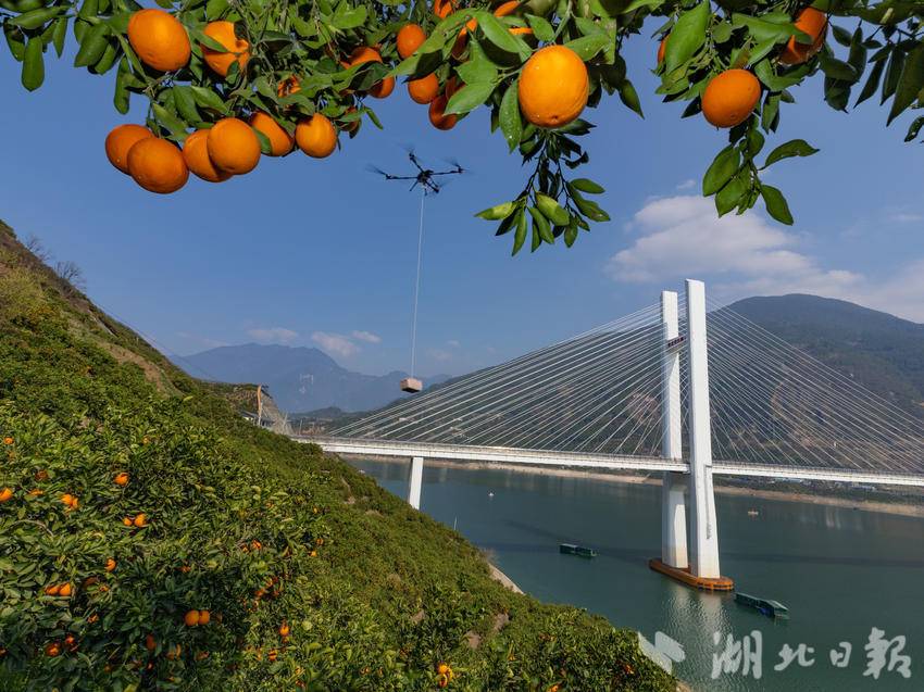 果园深处,橙农姜从山正忙得热火朝天。只见他一手托着橙子,一手握着果剪,手起剪落,三两下便摘下一颗饱满的果实。头顶上,一架无人机轰鸣作响,吊起满筐的红橙,翻山越岭运往山下的集散点。“今年红肉脐橙品质好、价格高,销路也畅通,每斤比去年涨了两毛钱,收入也比去年增加不少。”姜从山抹了把脸上的汗水,笑意从眼角蔓延开来。