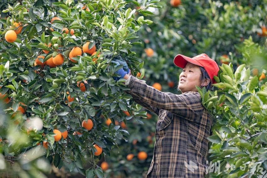 在郭家坝镇邓家坡村,果农们正抢抓农时采摘脐橙。彭强摄