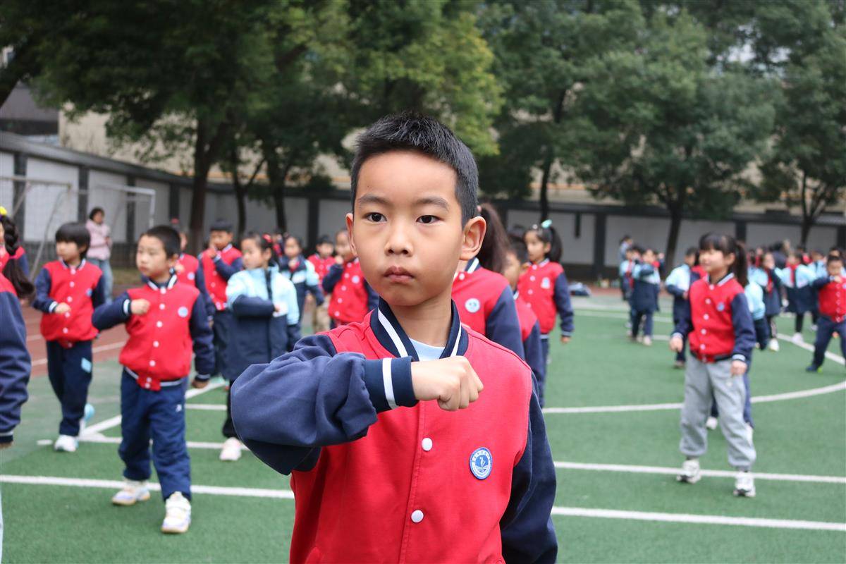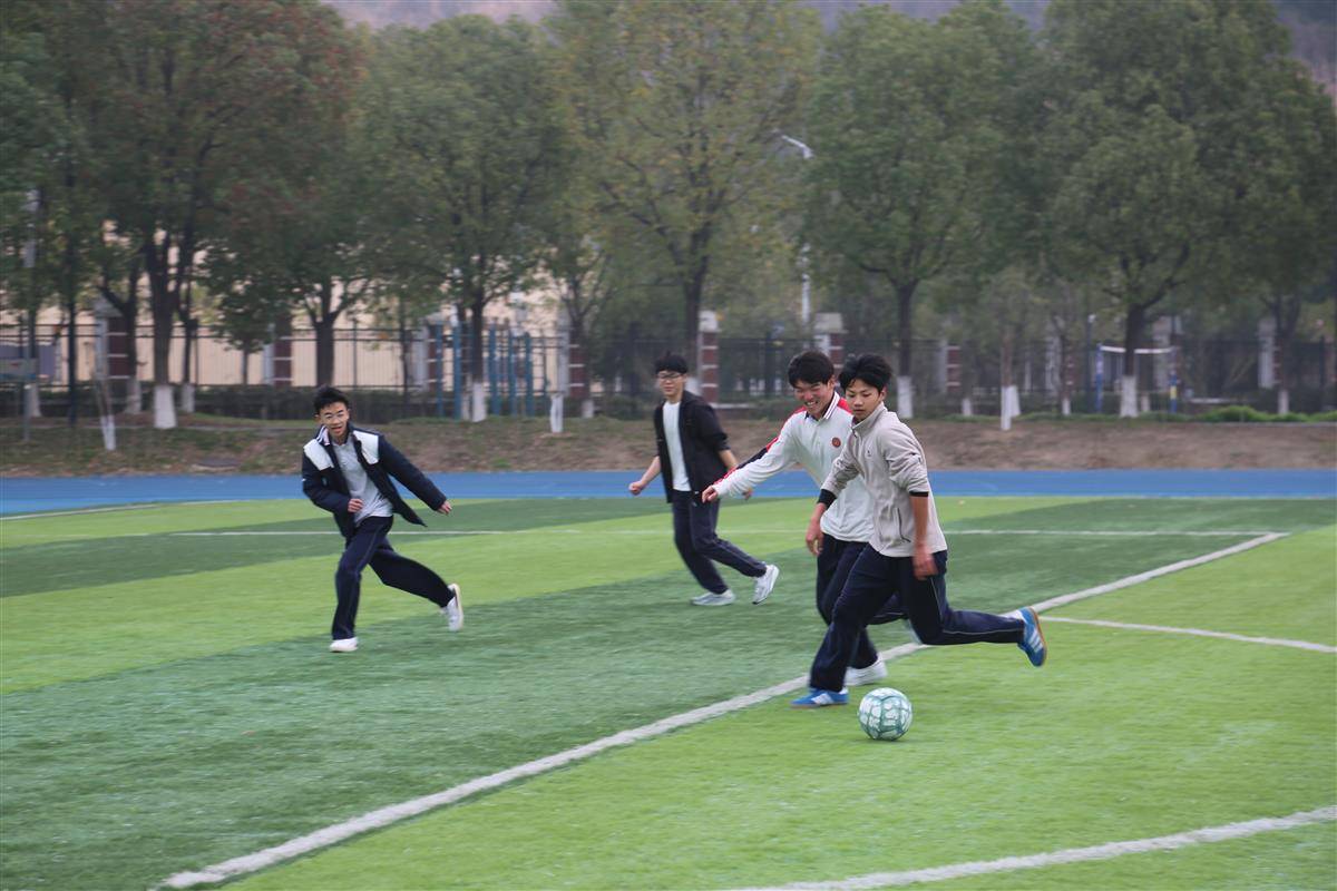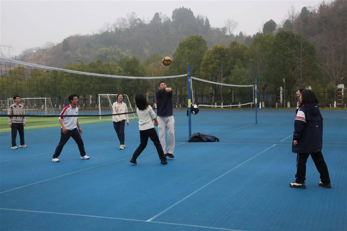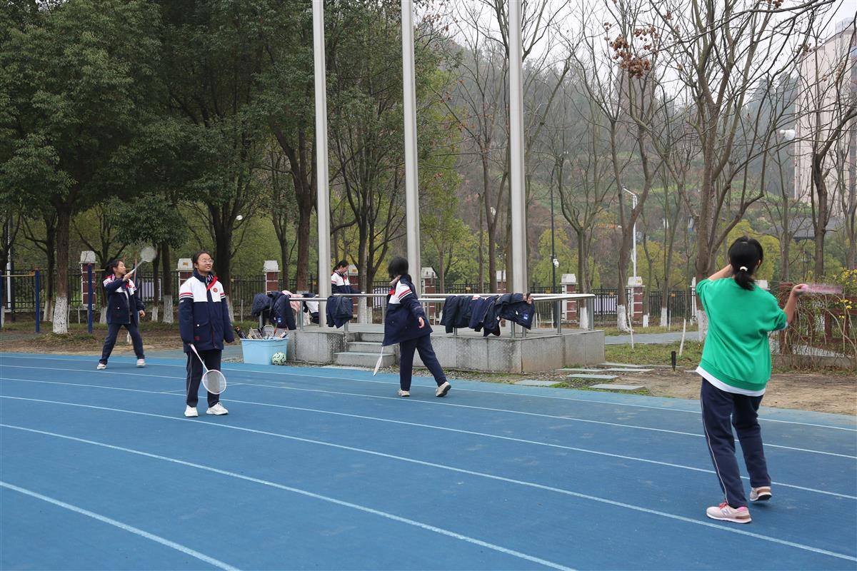 操场的一角,学生们在体育课上尽情打羽毛球。