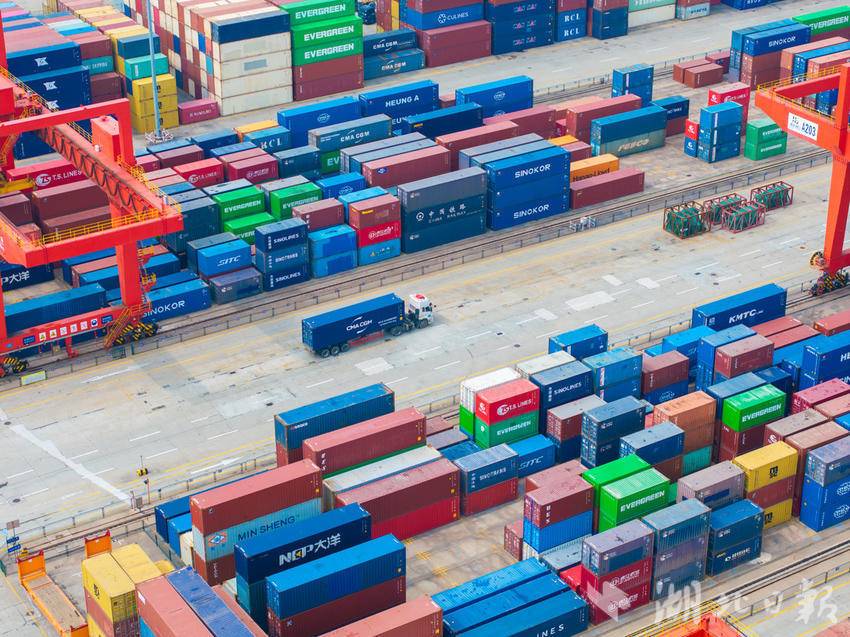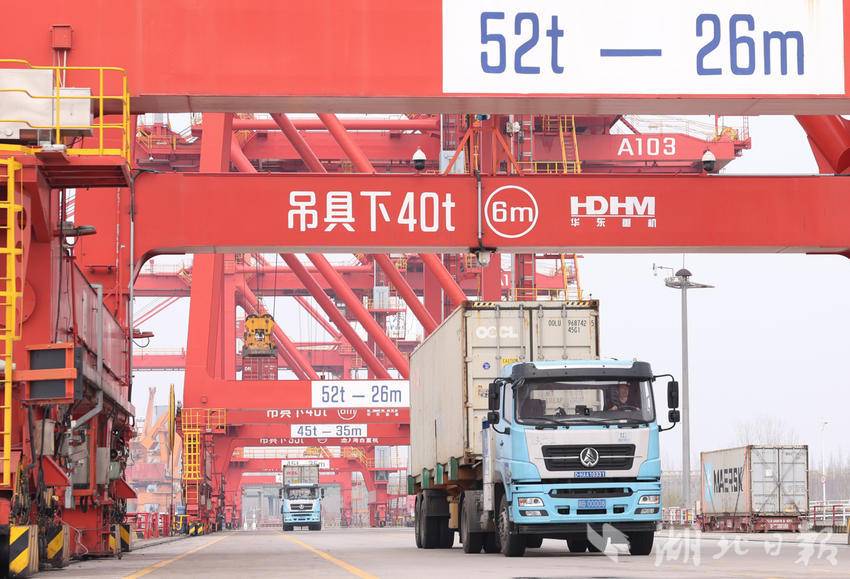 繁忙的武汉阳逻港。(湖北日报全媒记者 柯皓 摄)
