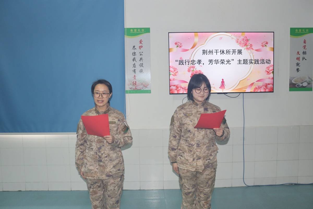 近日,湖北省军区荆州离职干部休养所开展“践行忠孝,芳华荣光”主题实践活动,在忆初心、传家风、颂芳华中致敬抗美援朝女兵和在家庭及工作岗位上发光出彩的优秀女性。
