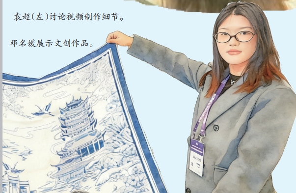 最初,邓名媛参与设计黄鹤楼冰箱贴。看着自己画的家乡地标,变成游客喜欢的小礼物,那种成就感让她记忆深刻。
