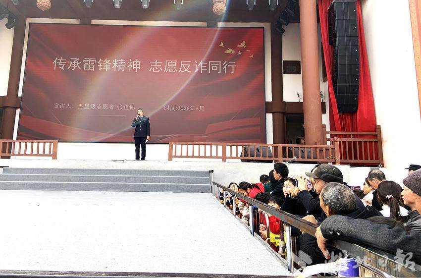 活动现场,20多名志愿者代表庄严宣誓,彰显守护一库碧水、库岸青山的坚定决心。文艺节目、志愿宣讲、反诈宣传、知识抢答等环节轮番开展,志愿者讲述蒋德新先进事迹,民警以案普法提醒群众守好钱袋子,现场气氛热烈、寓教于乐。