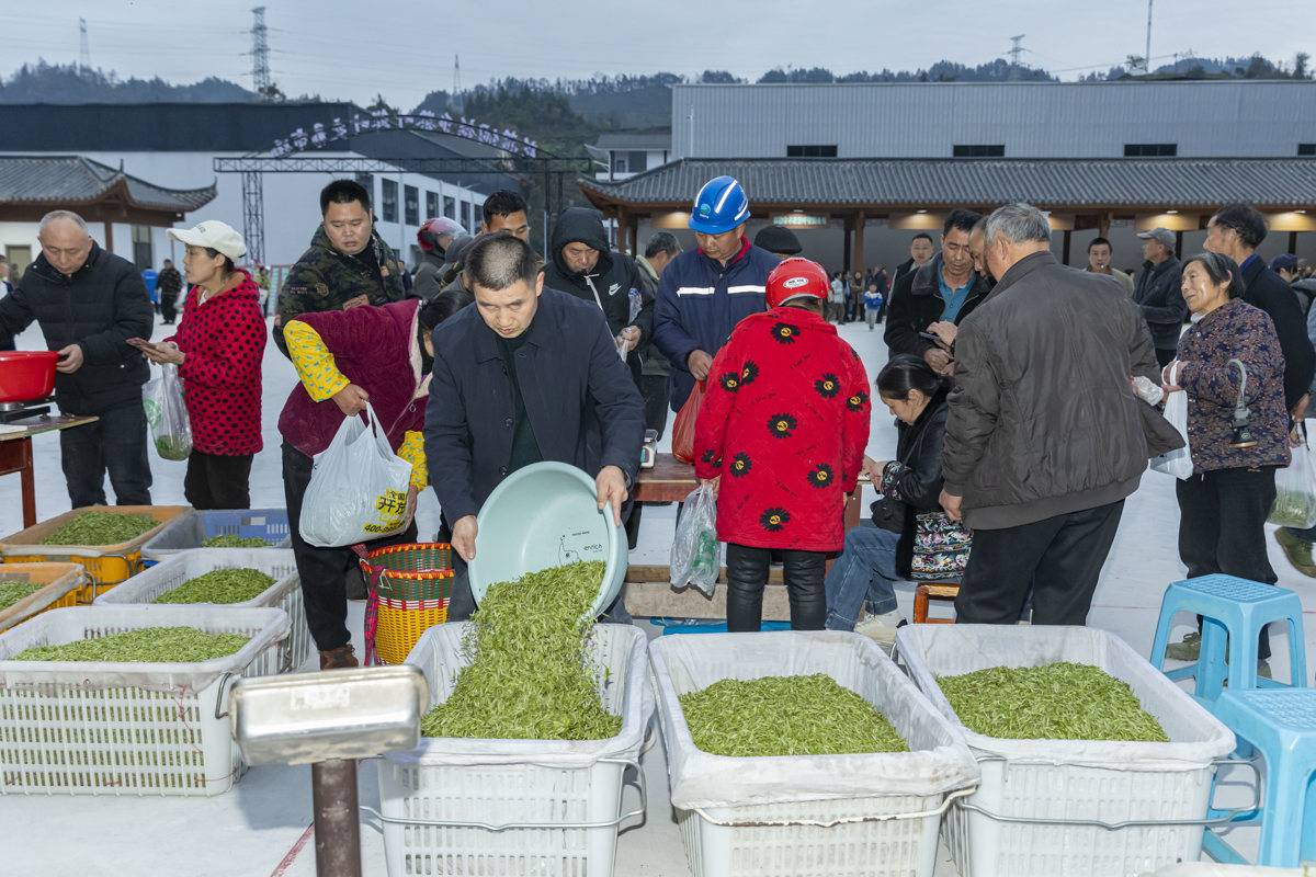 时至下午6时,茶农们带着清晨采摘的鲜嫩茶芽络绎赶来,吆喝声、过秤声、讨价还价声交织相融。这处总投资250万元建成的标准化交易市场,甫一开市,便成为恩施玉露发源地最鲜活的“春之舞台”。