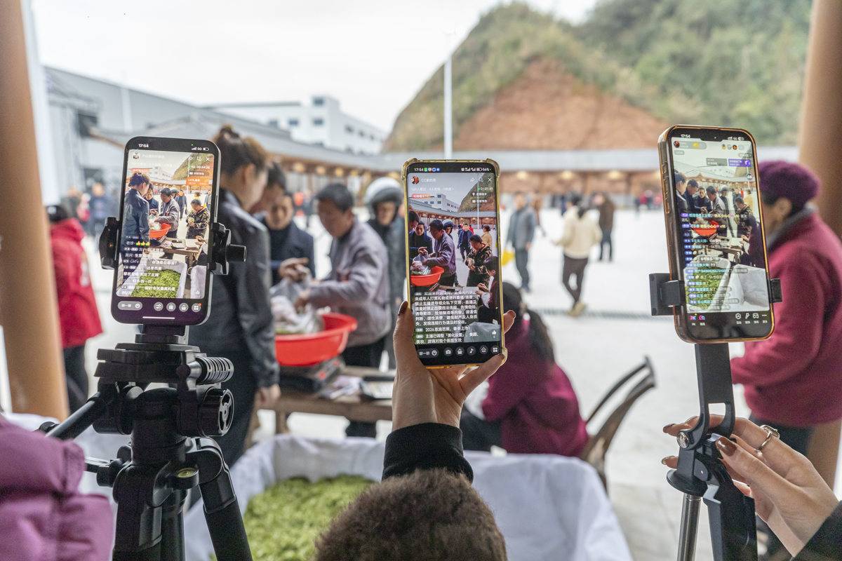 市场北侧,沙地乡火风口茶业专业合作社负责人吴海红正忙着开启直播,手机镜头前,网友们的提问不断,咨询鲜叶收购价格、茶叶品质以及干茶预售价格等问题。“我们那海拔高,鲜叶还上市,来看看鲜叶交易行情,心里有个底,也顺道走趟亲戚。”吴海红对着镜头,跟网友们娓娓道来。