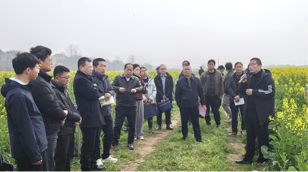 浠水县巴河镇闻家铺村小麦、油菜示范基地,与会人员实地观摩小麦、油菜春季田间管理、病虫害绿色综合防控及新品种、新装备展示,直观学习标准化生产、绿色防控、科学施肥等关键技术。农技专家深入田间地头,面对面讲解、手把手指导,把“技术课堂”搬到生产一线,让种植主体看得懂、学得会、用得上。