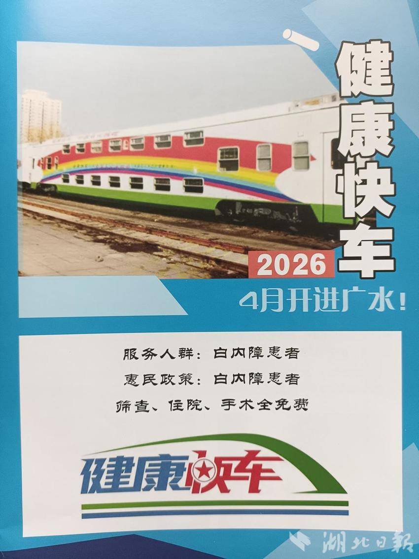 “健康快车”是1997年香港回归的公益馈赠,是我国唯一火车上的眼科慈善医院,深耕偏远地区公益诊疗,助力基层医疗提质。广水与健康快车情谊深厚,2012年、2021年两度承接项目,累计完成2736例复明手术。今年项目4月至6月实施,光明惠民再谱新篇。