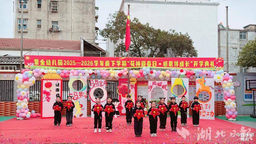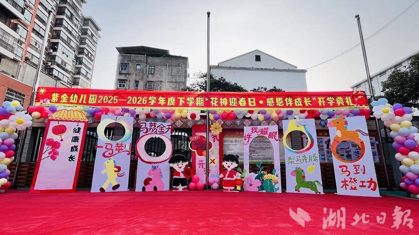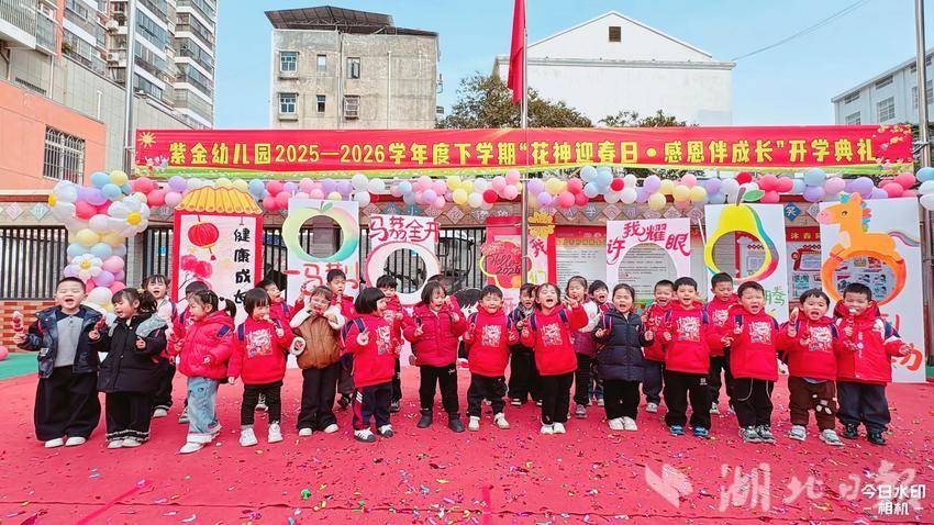 湖北日报讯(通讯员周灿、关梦丽)春风拂面,草木萌新,又是一年开学季。3月6日下午,安陆市府城紫金幼儿园以“花神迎春日•感恩伴成长”为主题,举行2025—2026学年度下学期开学典礼,全体师幼及后勤工作人员齐聚操场,在仪式感与温情中开启新学期的成长之旅。