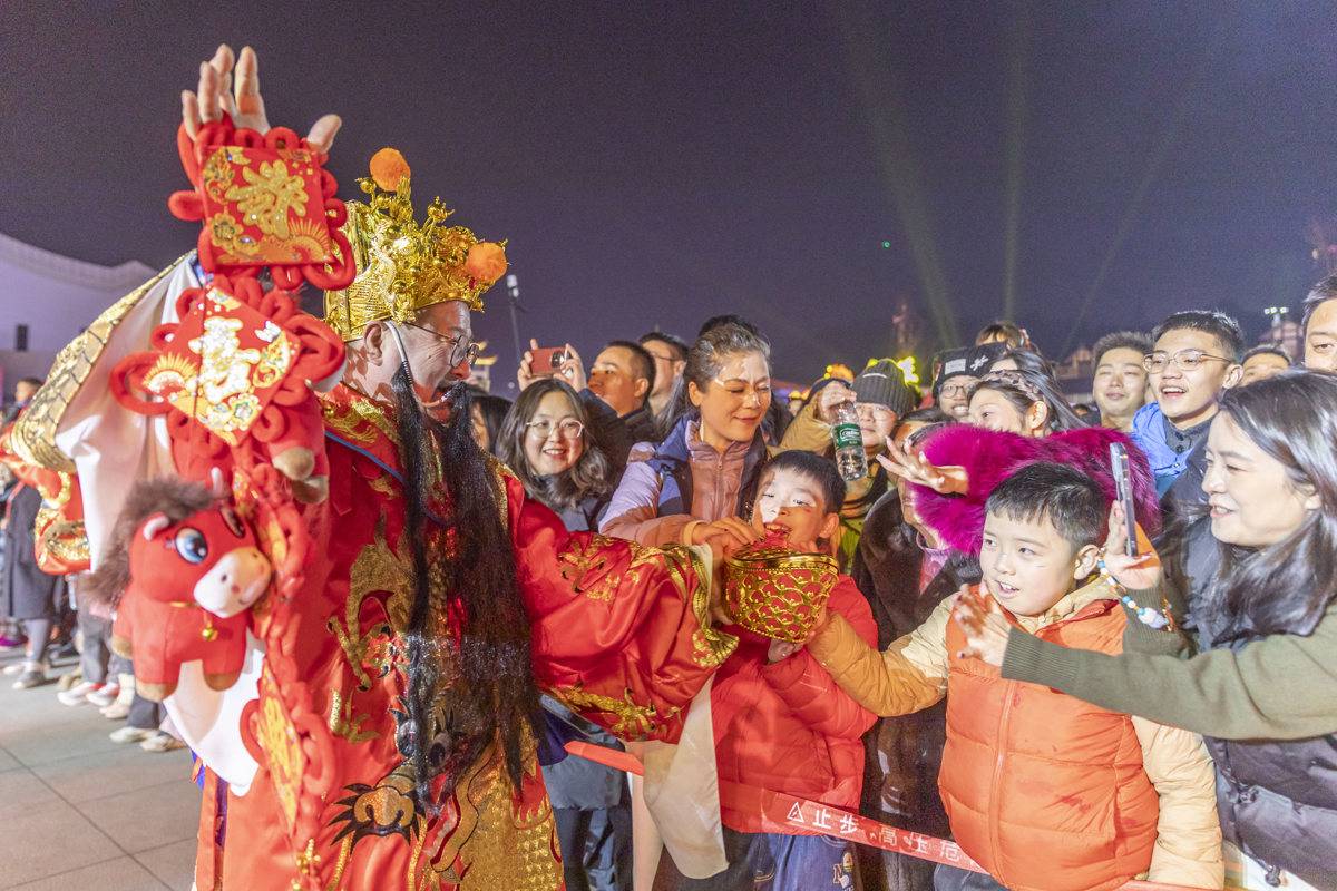 58岁的覃登军是恩施山民歌市级代表性传承人。景区结合他嗓音好、能即兴编唱祝福词的特长,为他量身打造了“财神爷”这一角色。手持元宝穿梭在人群中,一句“天降祥云地降宝,财神给你送福到”的吉祥话,让他迅速成为游客争相合影的焦点。一次,他为一对热恋青年即兴送上“左手牵右手,百年偕老”的祝福,让对方感动之余送上120元红包,成为活动中的一段温情插曲。