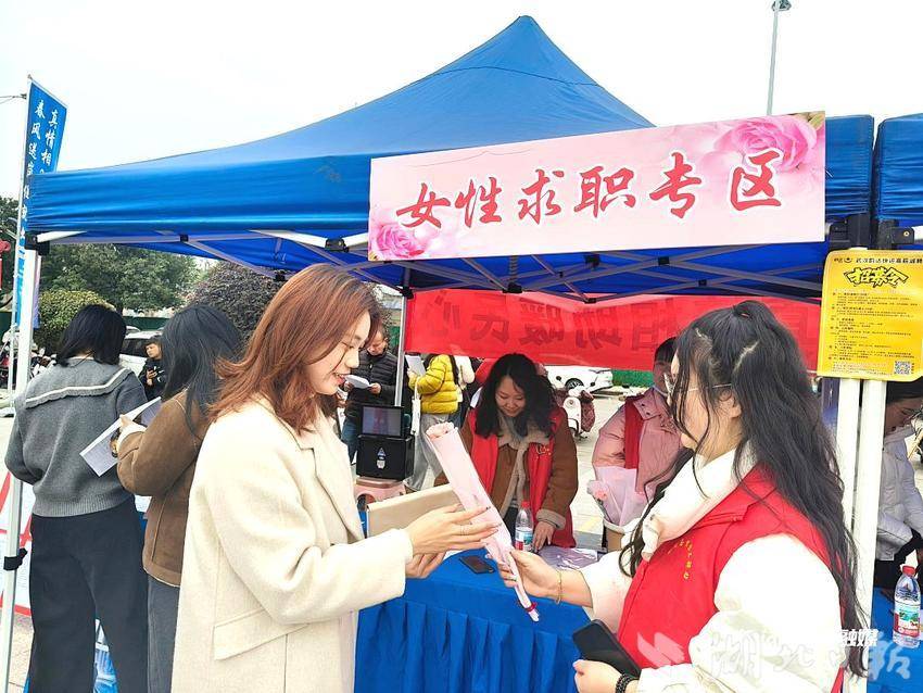 为营造节日氛围,主办方还为每一位到场的女性求职者送上鲜花。手捧鲜花的求职者们在寻找工作机会的同时收获了节日的惊喜与温暖,成为招聘会上一道温馨的风景。