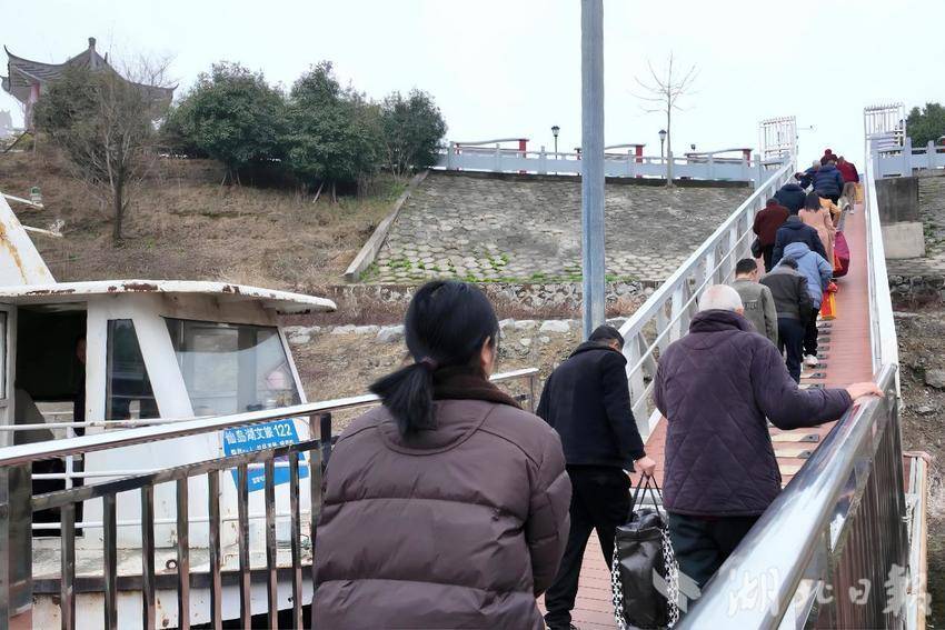 这是2026年春节期间客渡船实行免票的最后一天。岸边的石阶上,人们拎着大包小包,井然有序地排队候船。对于库区的百姓来说,这不仅是一趟通往集镇的渡船,更是干群之间一场温暖的“双向奔赴”。