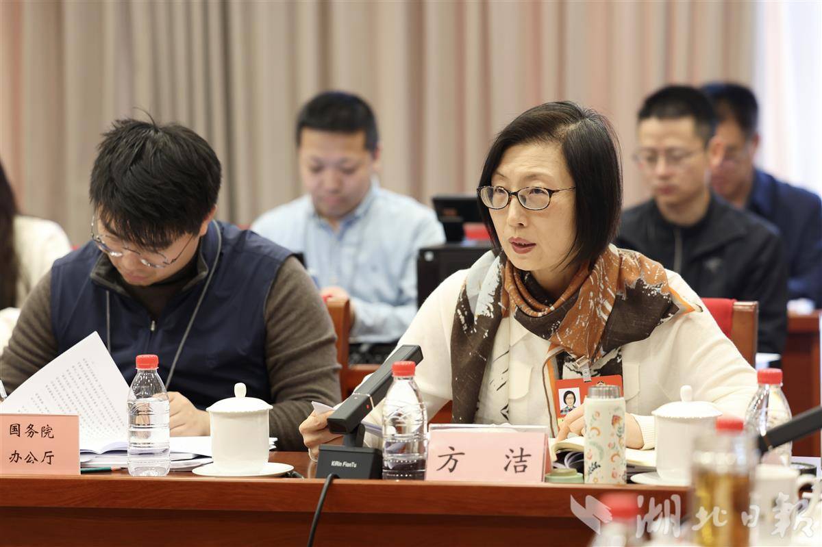 在民建界小组会议上,全国政协委员方洁(右)发言。湖北日报全媒记者 陈少哲 摄