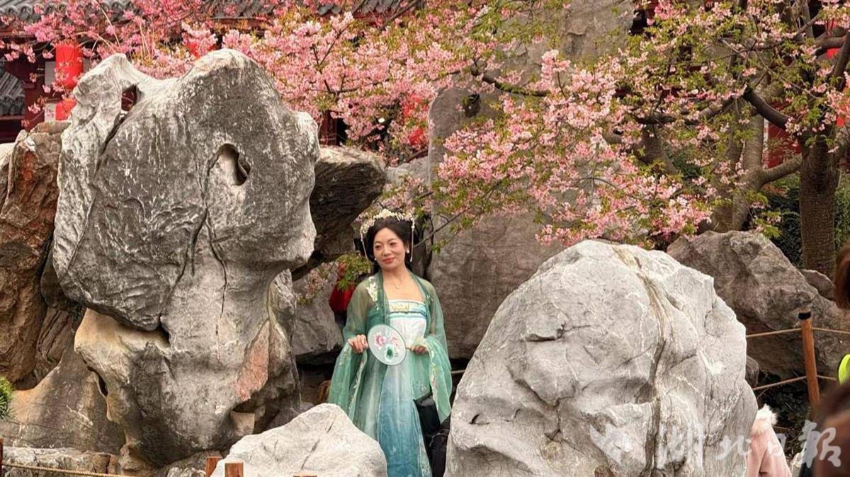 放眼全城,春日花事不止于樱。东湖梅园内,树龄约800年的古美人梅(被游客亲切称为“梅祖宗”)正值绽放,枝干苍古遒劲,新花粉嫩雅致;武汉花博汇近20万株郁金香织成“彩虹海”,红、黄、粉多色交织。花博汇景区相关负责人透露,进入春日花季,景区流量慢慢回温,单日入园量可达8000人次。