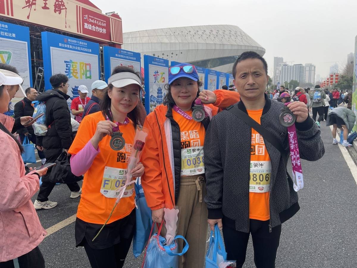 “最累的是陪跑员,所以在跑马过程中三名志愿者要轮换岗位。”夏冬敏说,经过不懈努力,“黑暗跑团”孝感站已注册的视障跑者有10余人,志愿者80余人。