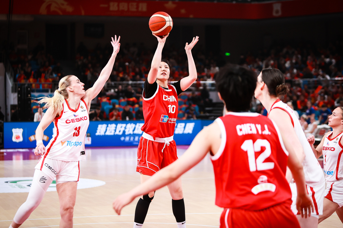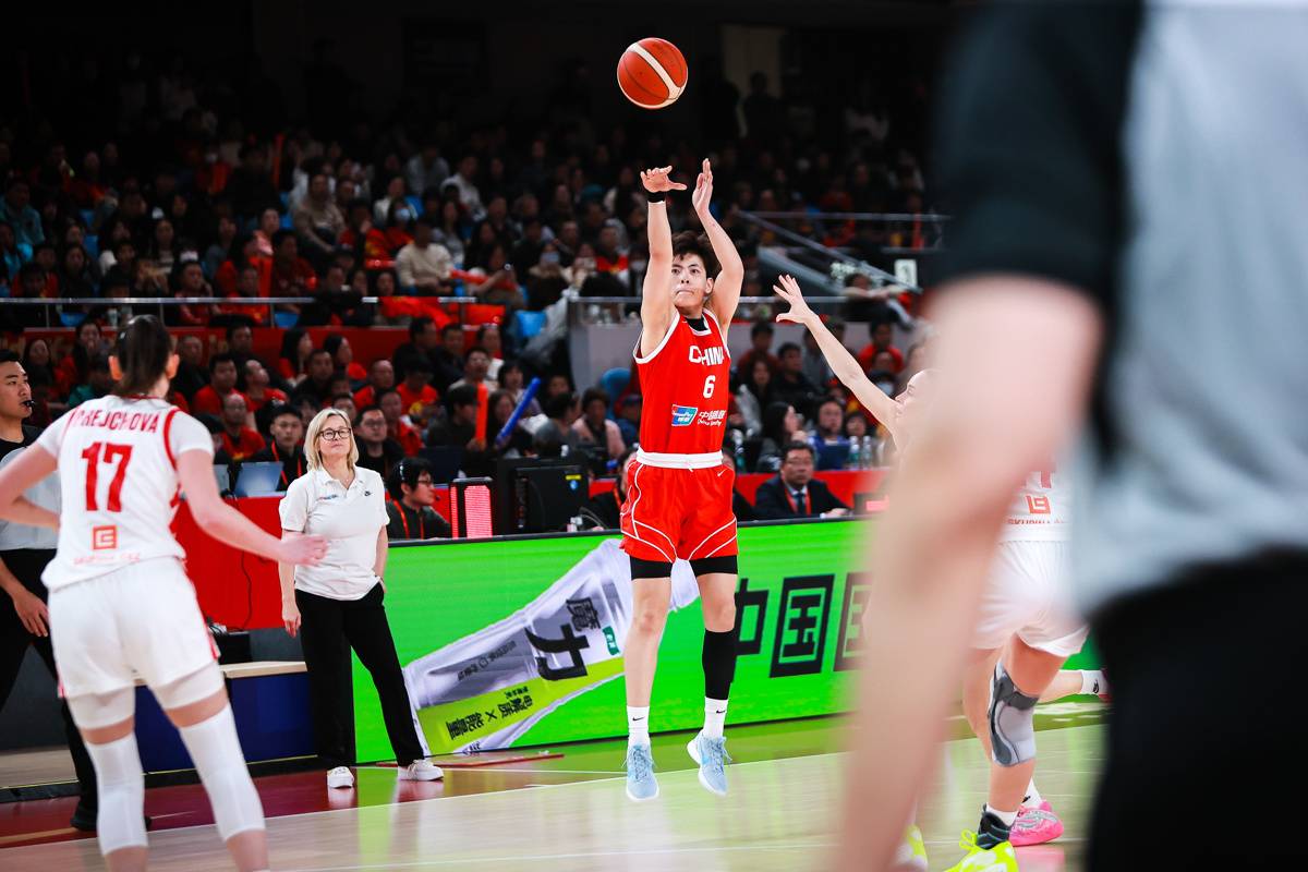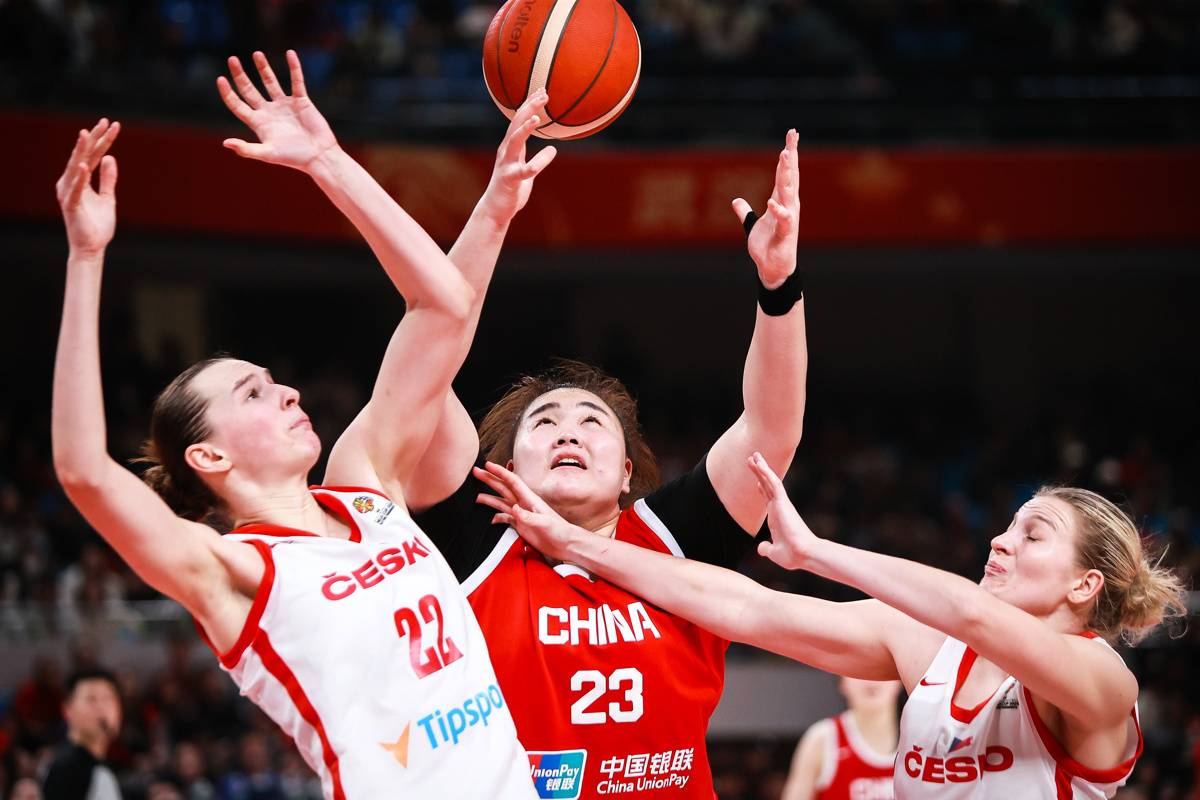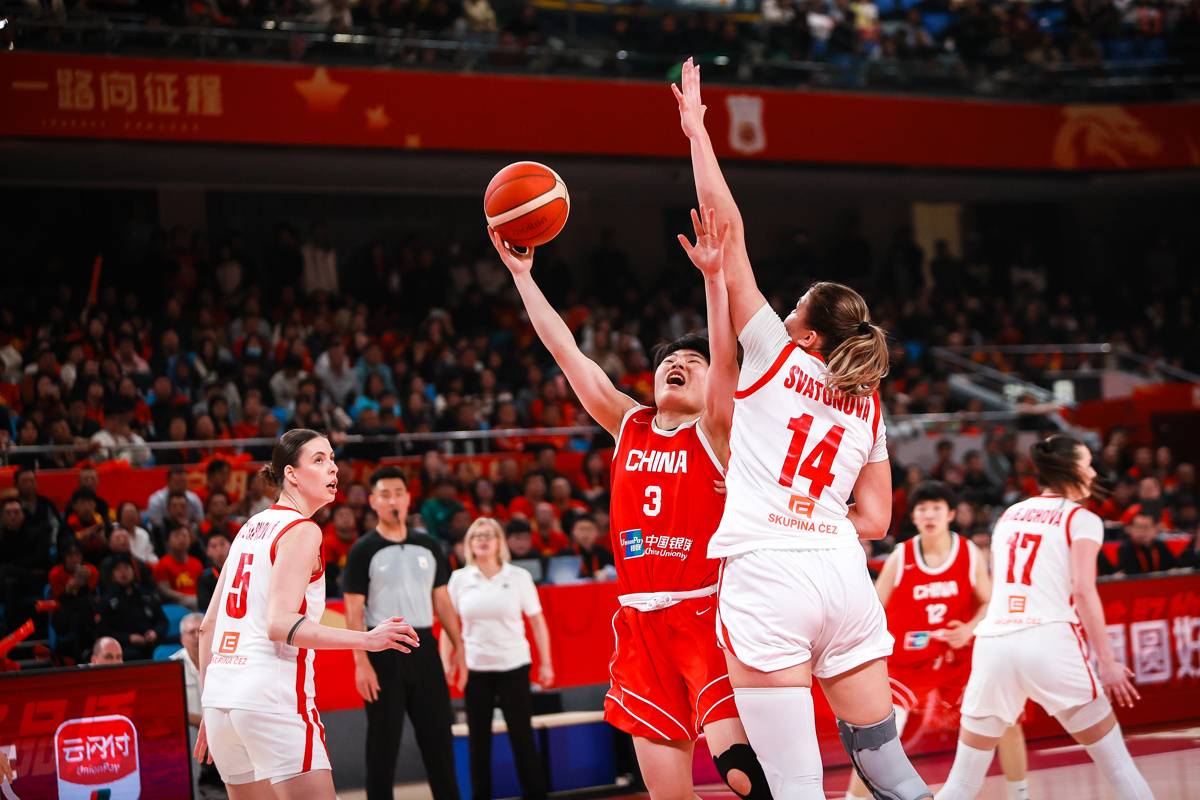 3月8日,洪山体育中心体育馆,“安阳湖橄榄油杯”女篮热身赛中国队85比51战胜捷克队,这也是中国女篮系列热身赛中的最后一战,11日她们将坐阵武汉体育中心体育馆开启世界杯预选赛征程。(湖北日报全媒记者 时龚 摄)