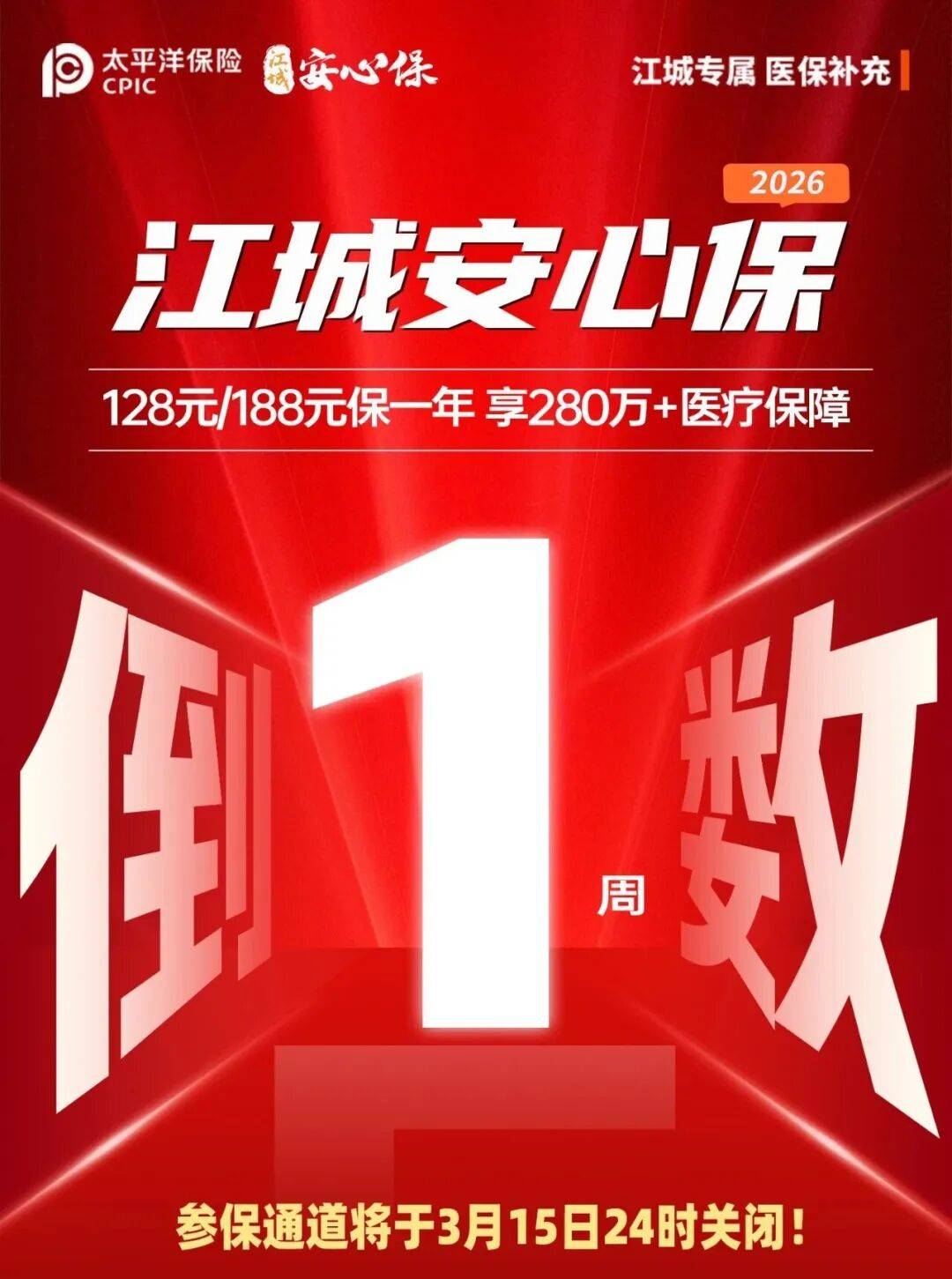 春回大地,万物复苏。在这充满希望的季节里,有一件关乎全家健康的大事,需要您格外留意——“江城安心保2026”参保期已进入最后倒计时,距离参保通道关闭不足1周!