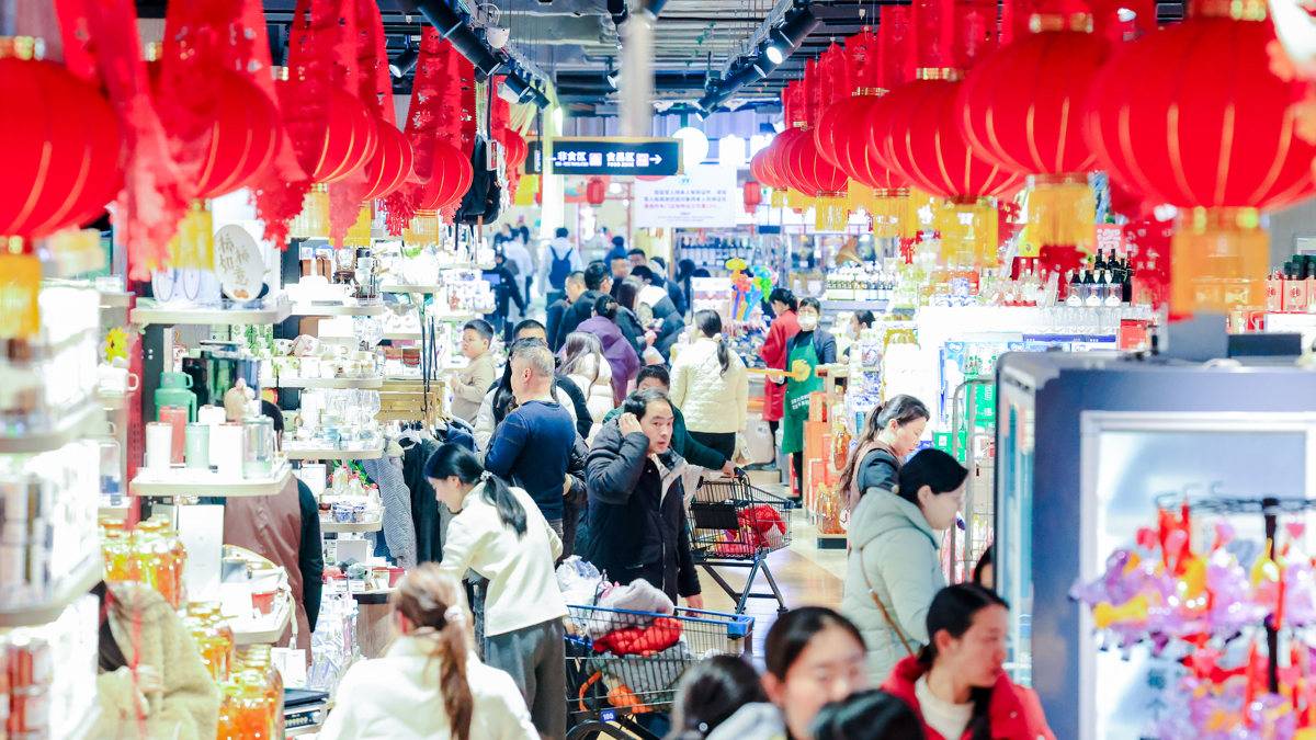 图为3月3日元宵节,黄商生活超市万达广场店内客流如织。(湖北日报全媒记者 成熔兴 摄)