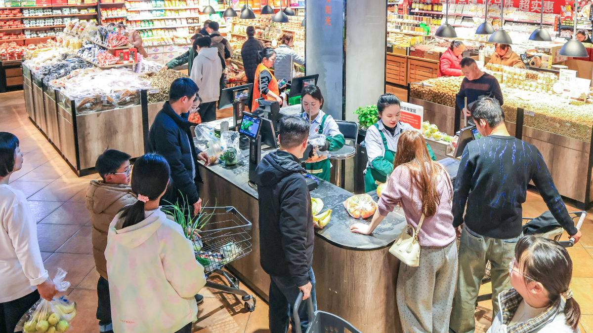 “70%以上的蔬果实现源头直购,菜采田头、果采山头。”黄商集团总经理尹鹏算了一笔账:整个集团通过优化供应链减少中间环节后,品质提升了,进价降低了,售价更亲民。“今年毛利润水平基本没变,但品单价同比去年下降了一块钱,既让利于民,又依靠来客数量增加实现了销售显著增长。”他介绍,今年在黄冈消费券的拉动下,黄商集团各门店2026年1至2月营业收入同比增长4.06%。