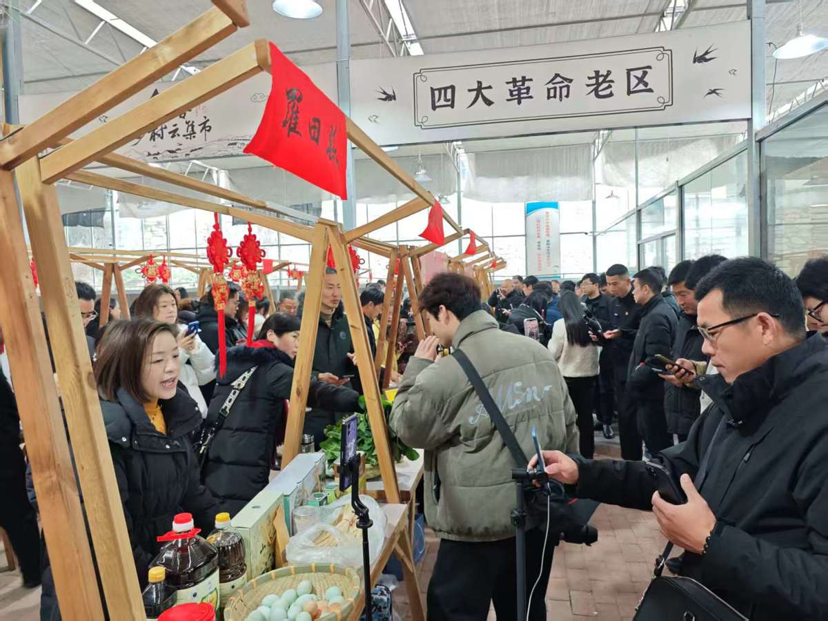 图为新春期间,黄冈罗田燕儿谷举办乡村云集市,开展“年货赶大集”活动。(通讯员 陈钦 王满 摄)